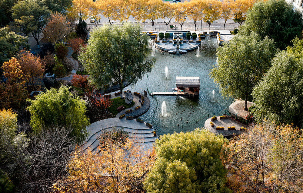 再往前,经贸广场一排金灿灿的银杏摇曳生姿,脚下的落叶窸窸窣窣,就像是对你我的问候。这是一个暖洋洋的,阳光色的秋天,也许你也会在心里轻叹,真美啊,似乎有谁将这世间所有的美丽,统统都揉进这一方秋色里去了。